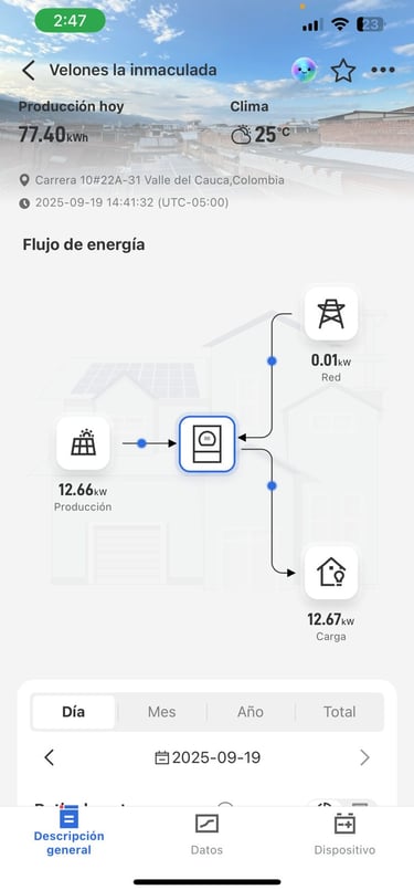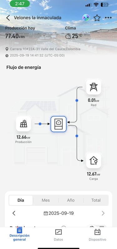 Instalamos un sistema de energía solar fotovoltaica en una vivienda ubicada en la ciudad de Cali, con el objetivo de reducir el consumo eléctrico convencional y promover el uso de energías limpias. Este proyecto permite al hogar generar su propia energía de forma sostenible, disminuyendo costos en la factura eléctrica y contribuyendo a la preservación del medio ambiente.