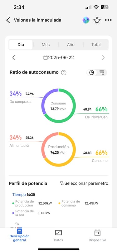 En Velones La Inmaculada instalamos un sistema solar fotovoltaico de 20 kW, equipado con un limitador de exportación que asegura que la energía generada se use principalmente en el sitio, evitando la inyección total a la red.
